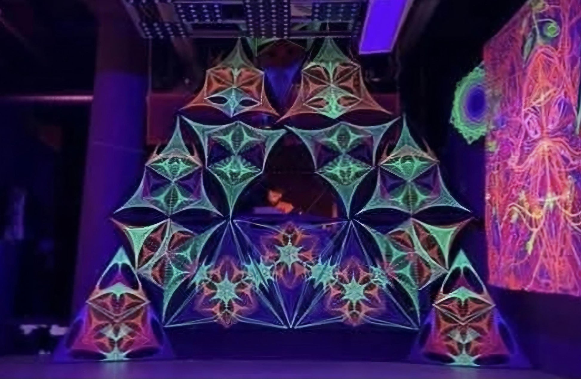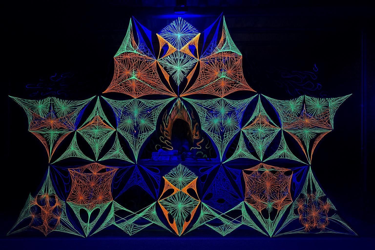 UV-Fadenkunst • Modulare psychedelische Bühnendekoration