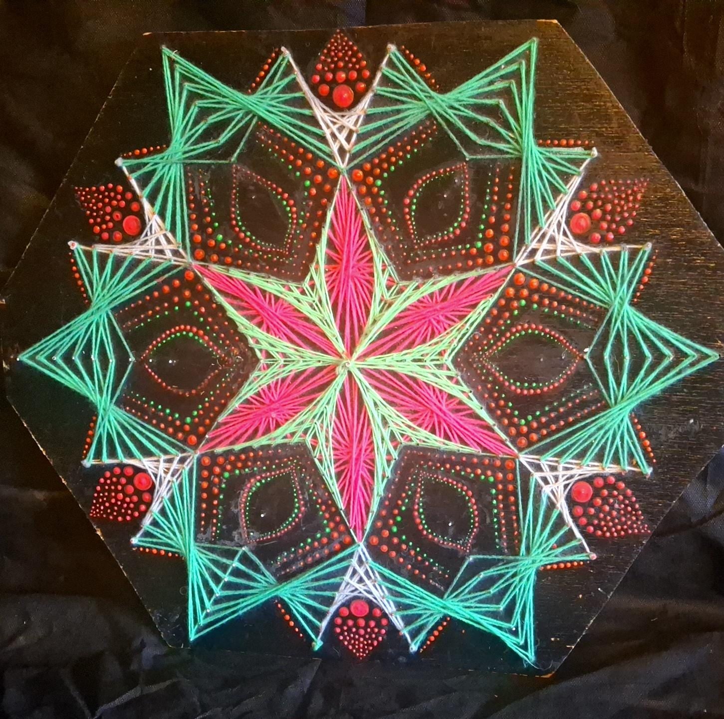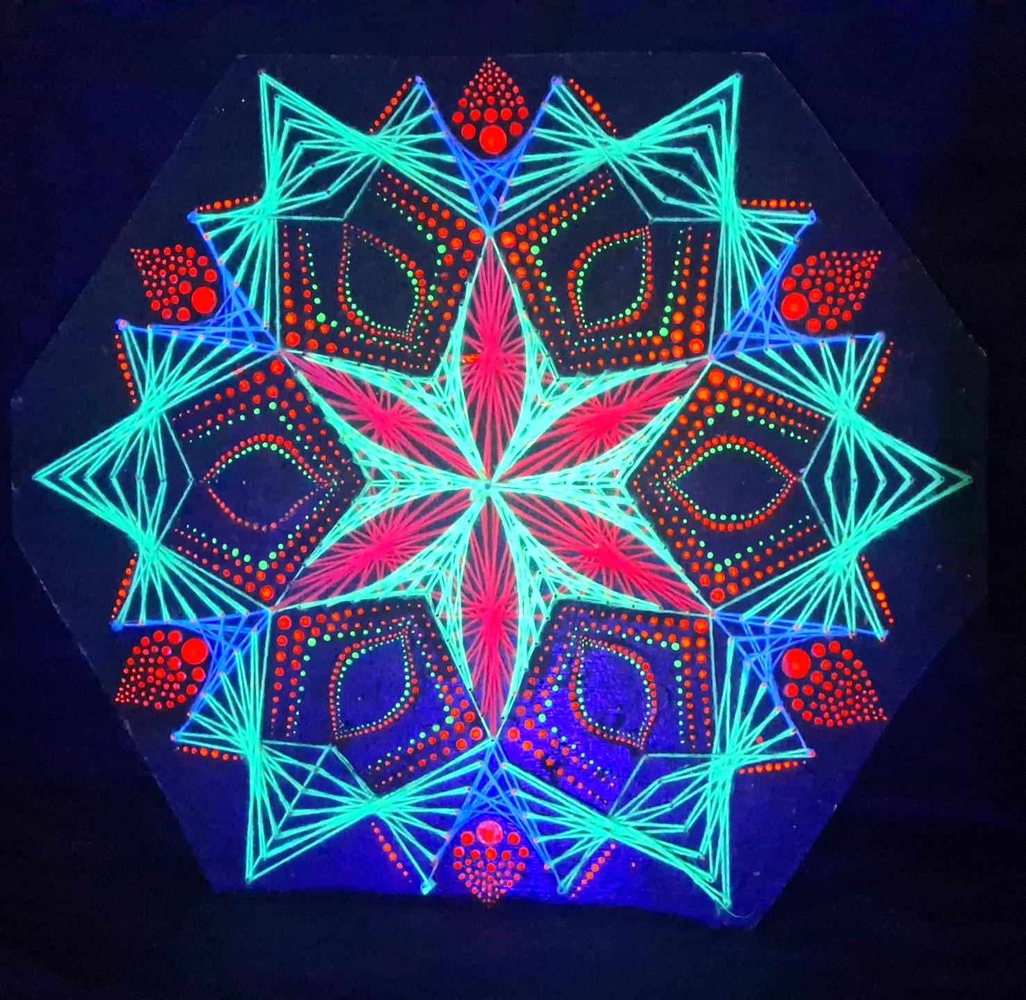 Psychedelische UV-Fadenkunst, gepunktetes Mandala