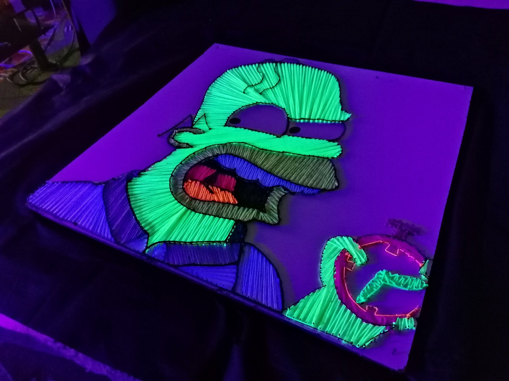 ⏳ Homer Simpson – Zeit | UV-reaktive Fadenkunst ⏳