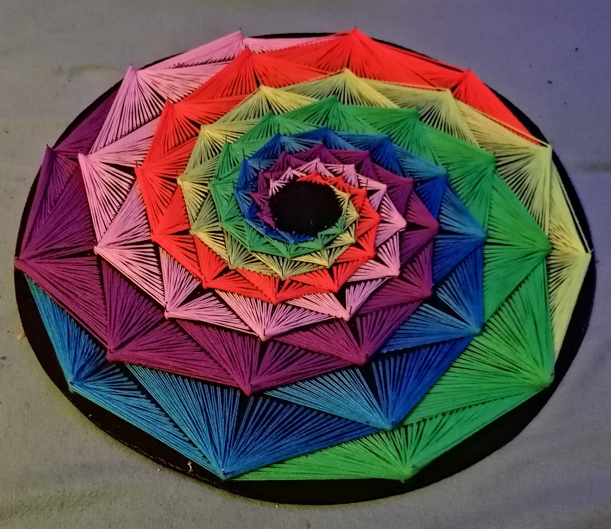 Spiral Rainbow ist eine meiner anspruchsvollsten und gleichzeitig wertvollsten Kreationen – eine handgefertigte, UV-reaktive Regenbogenspirale, die sich wie ein lebendiger Wirbel aus Farbe und Präzision anfühlt 🌪️