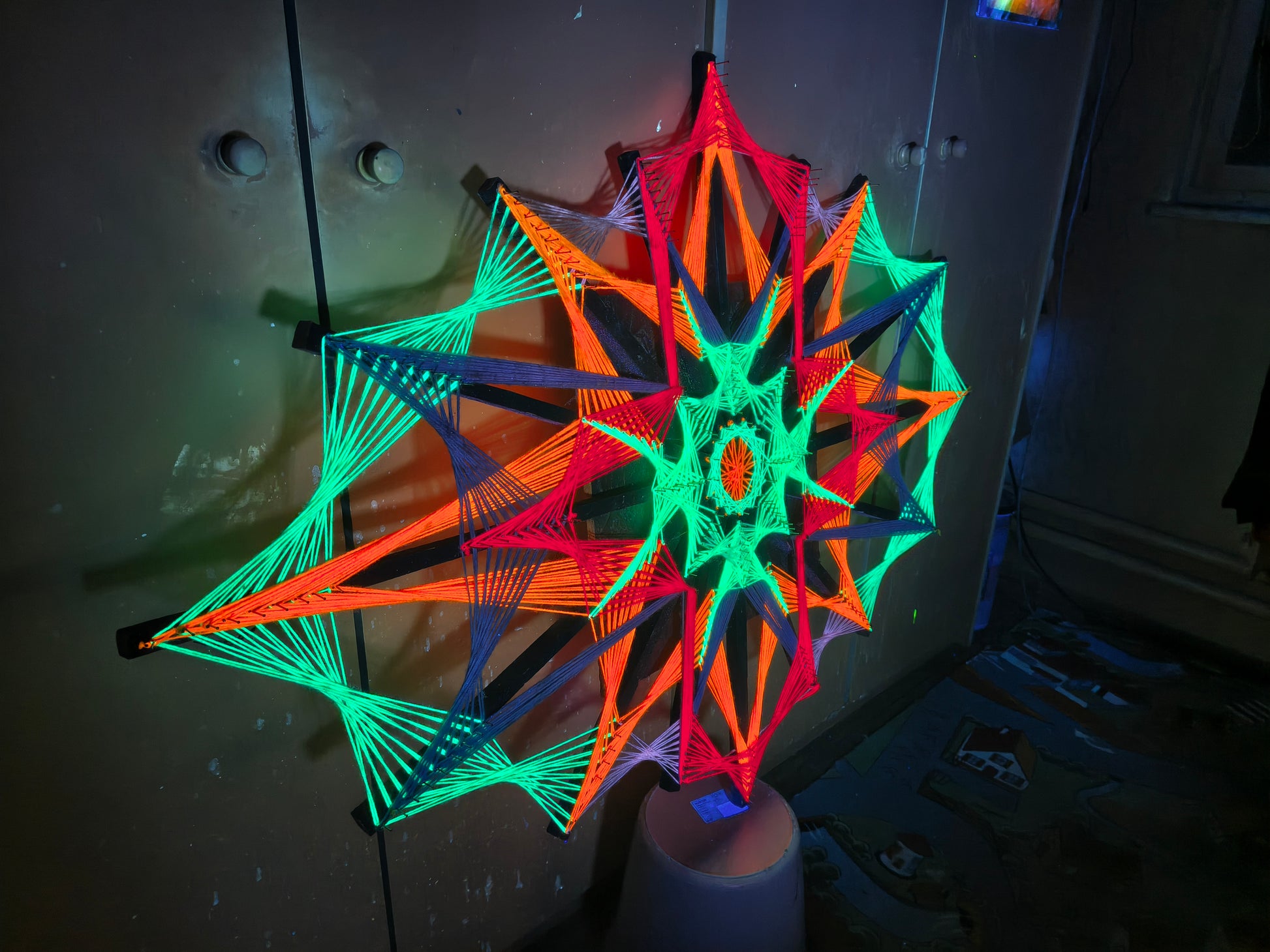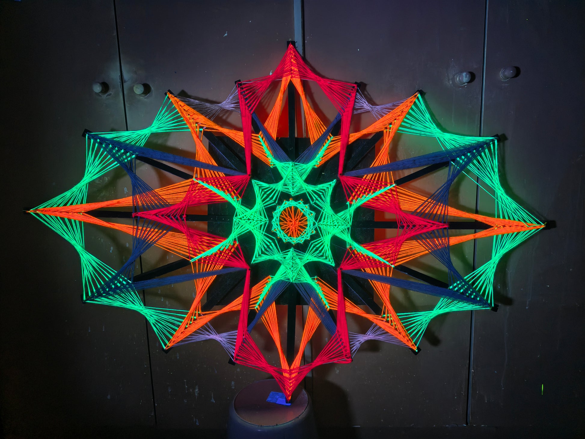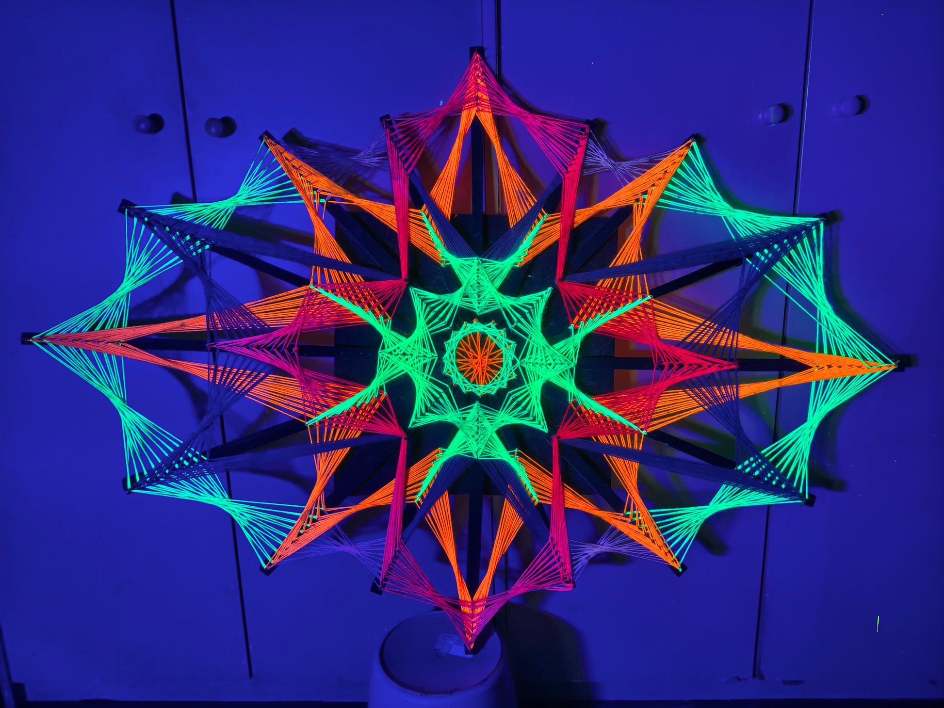 Colorsun #16 est un mandala géométrique en string art de grande taille, conçu pour se transformer avec la lumière ☀️