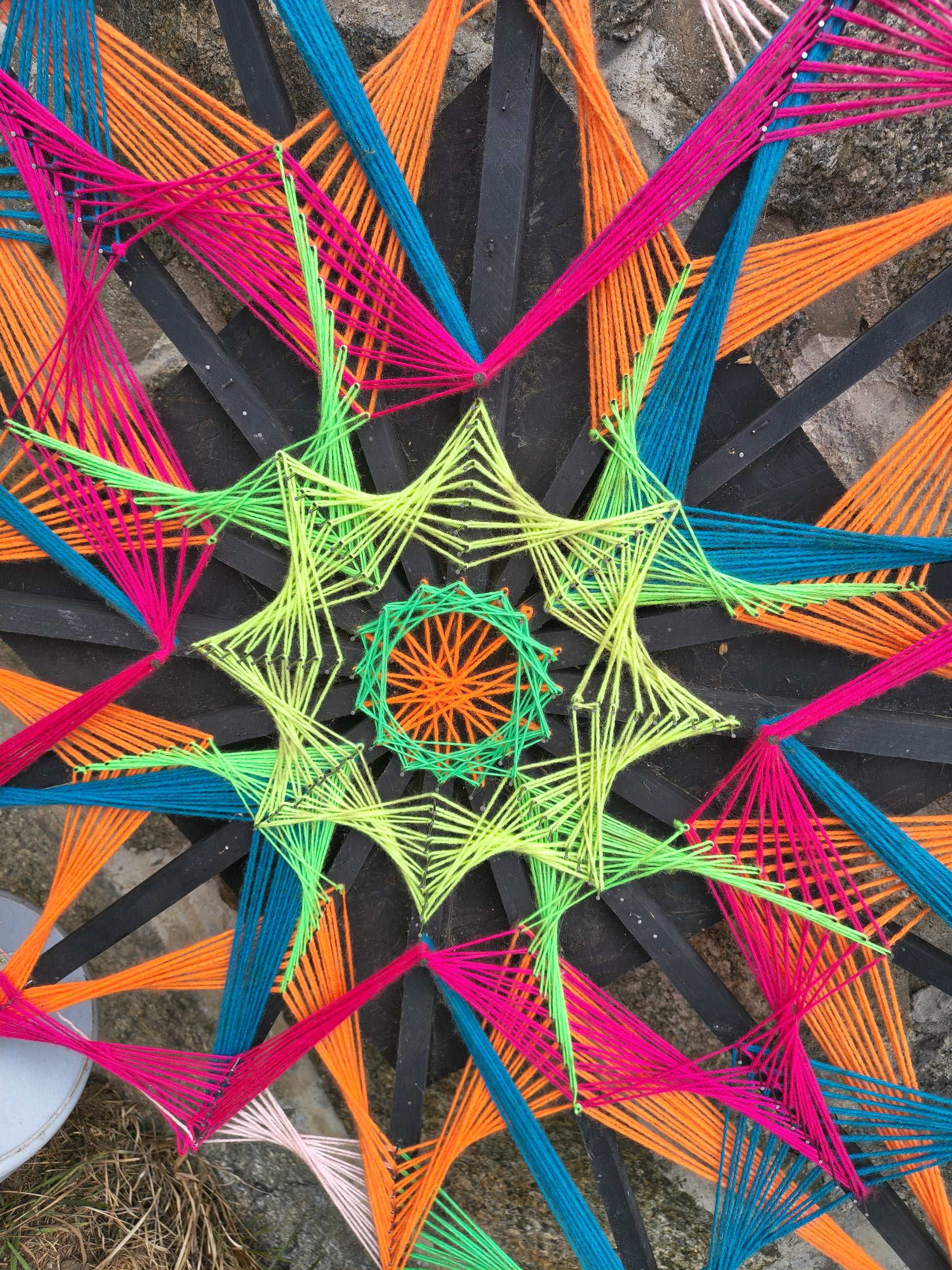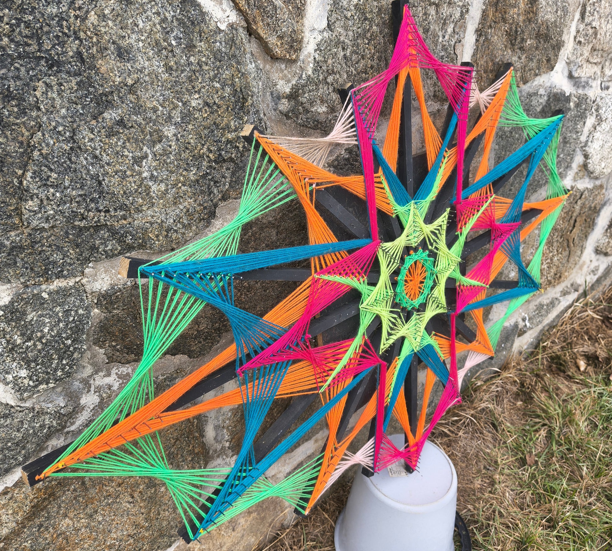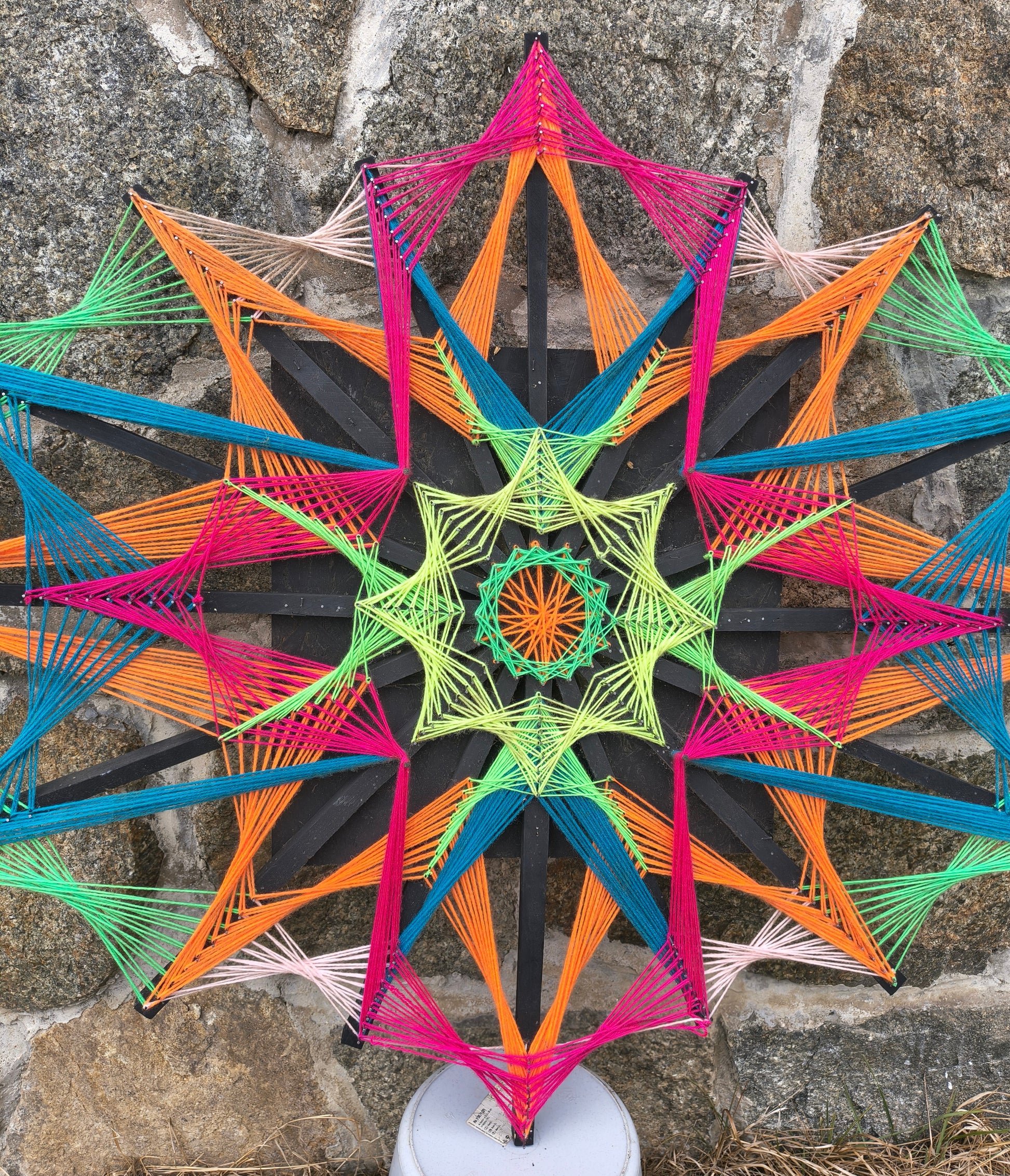 Colorsun #16 est un mandala géométrique en string art de grande taille, conçu pour se transformer avec la lumière ☀️