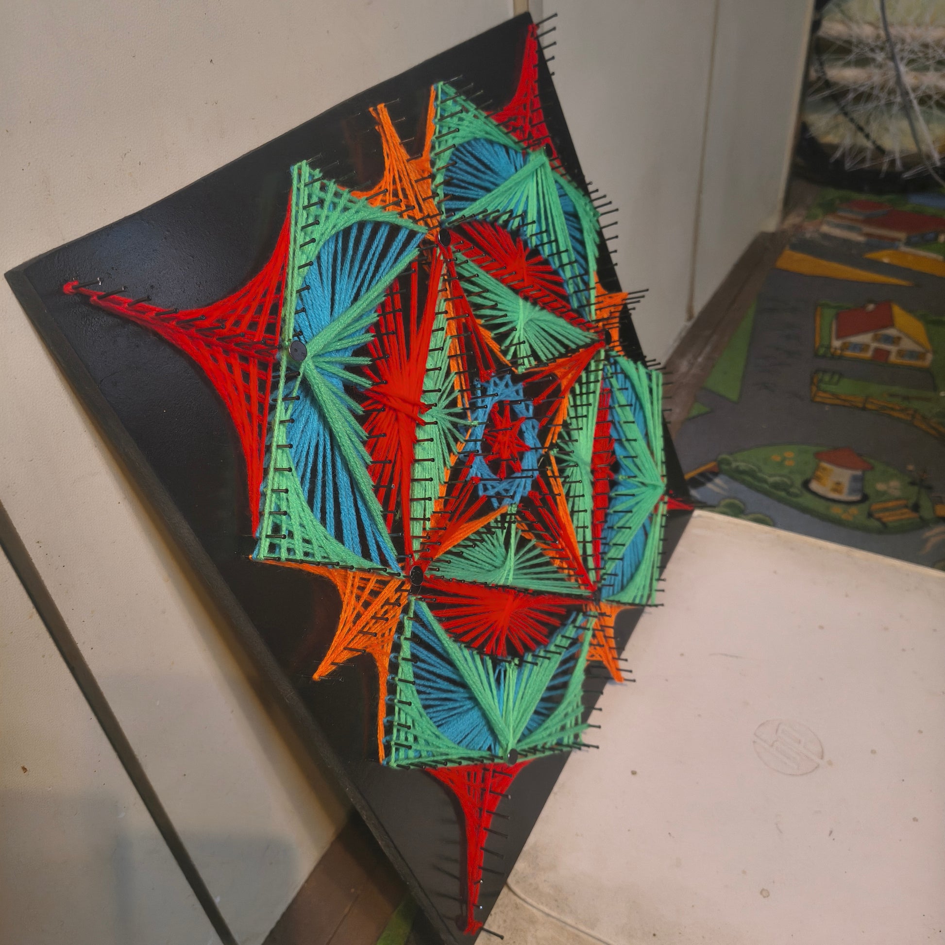 Material: wood, metal nails, acrylic synthetic cotton threads