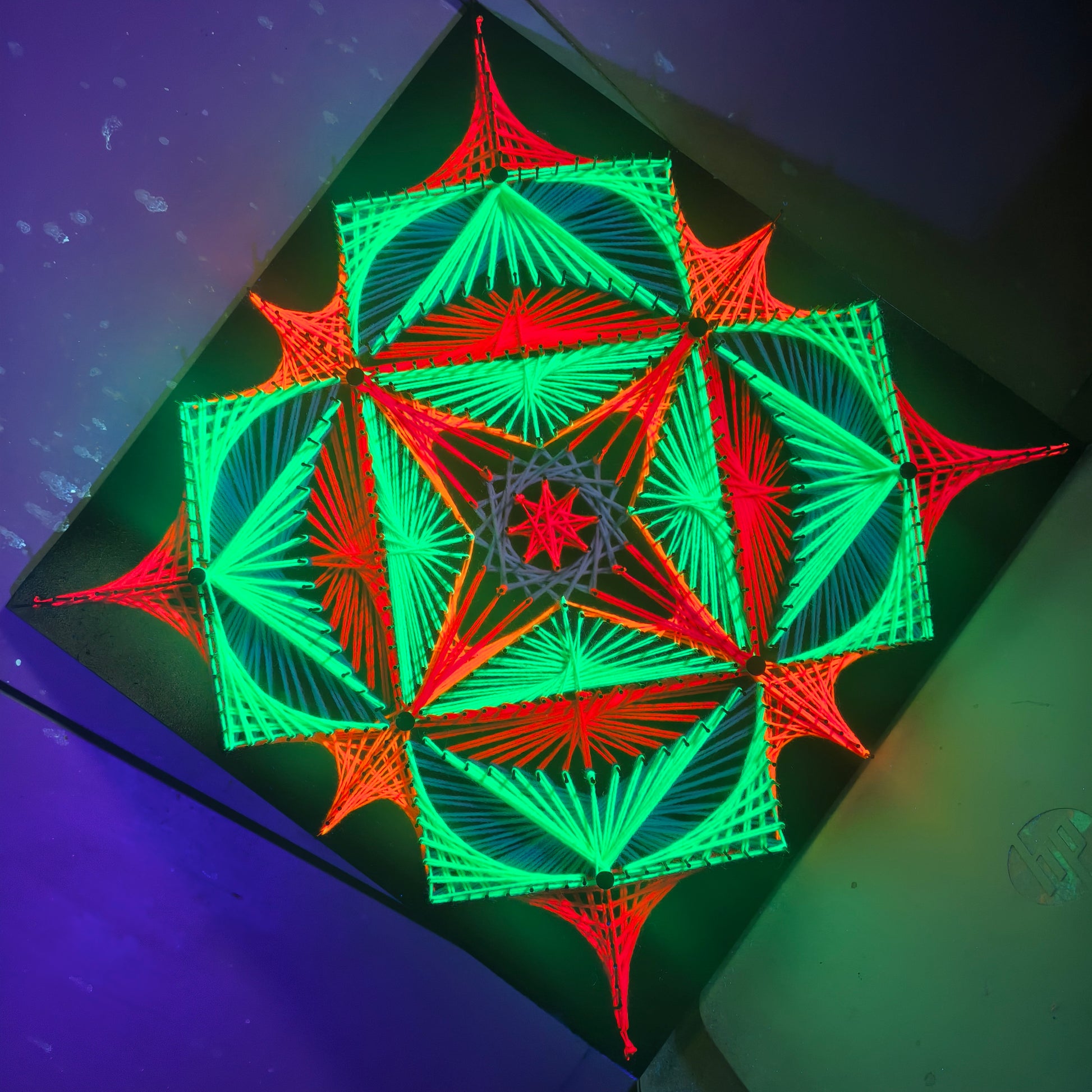 Éclairés par une source UV de 395 nm, les matériaux fluorescents se mettent à briller, créant une atmosphère profonde, vibrante et immersive. Les couleurs gagnent en intensité, les motifs se précisent et les œuvres d'art révèlent une profondeur visuelle inédite.