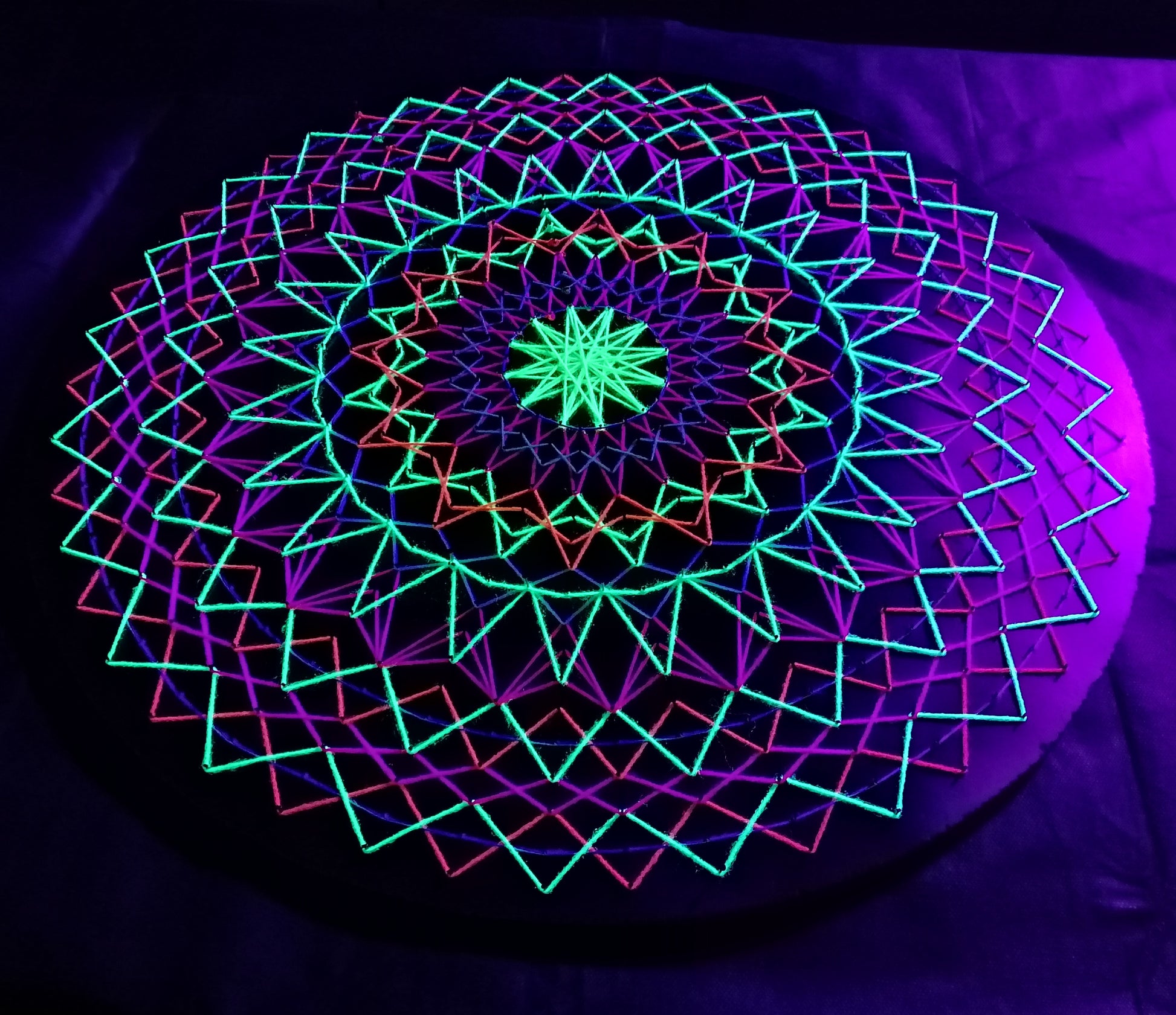 ✨ UV-reactive threads create a vivid glow under ultraviolet light.