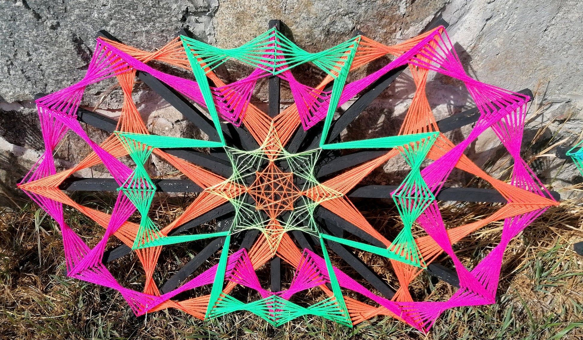 Colorsun #7 is a vibrant string art piece inspired by solar energy, rhythm, and psychedelic geometry.