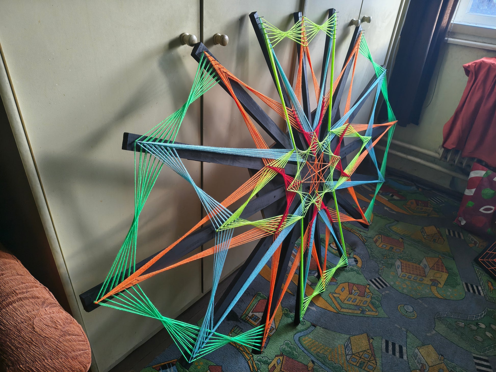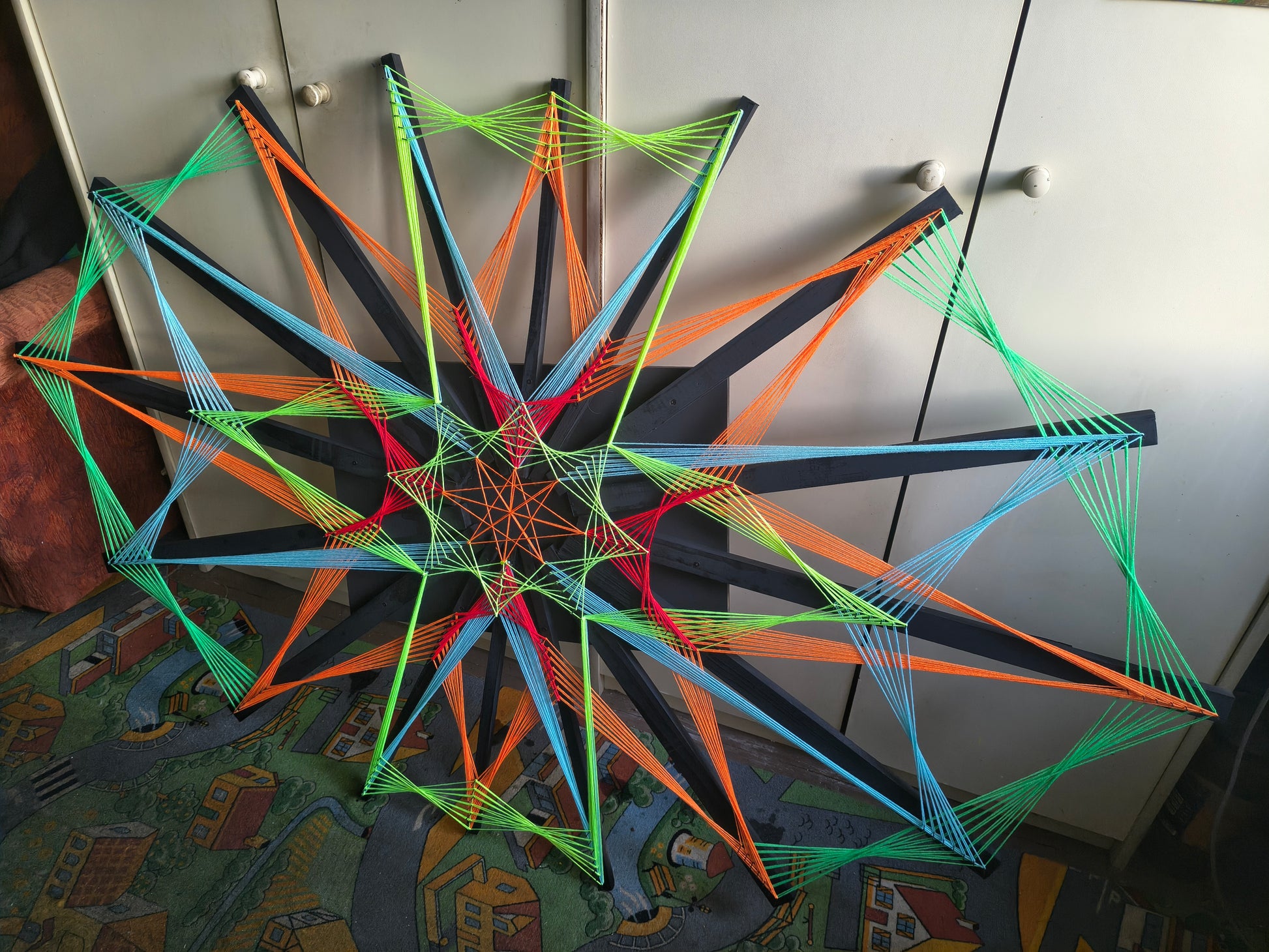 Colorsun #33 is the final and most refined piece of the Colorsun series — a large-scale geometric string art installation designed as a true visual centerpiece.