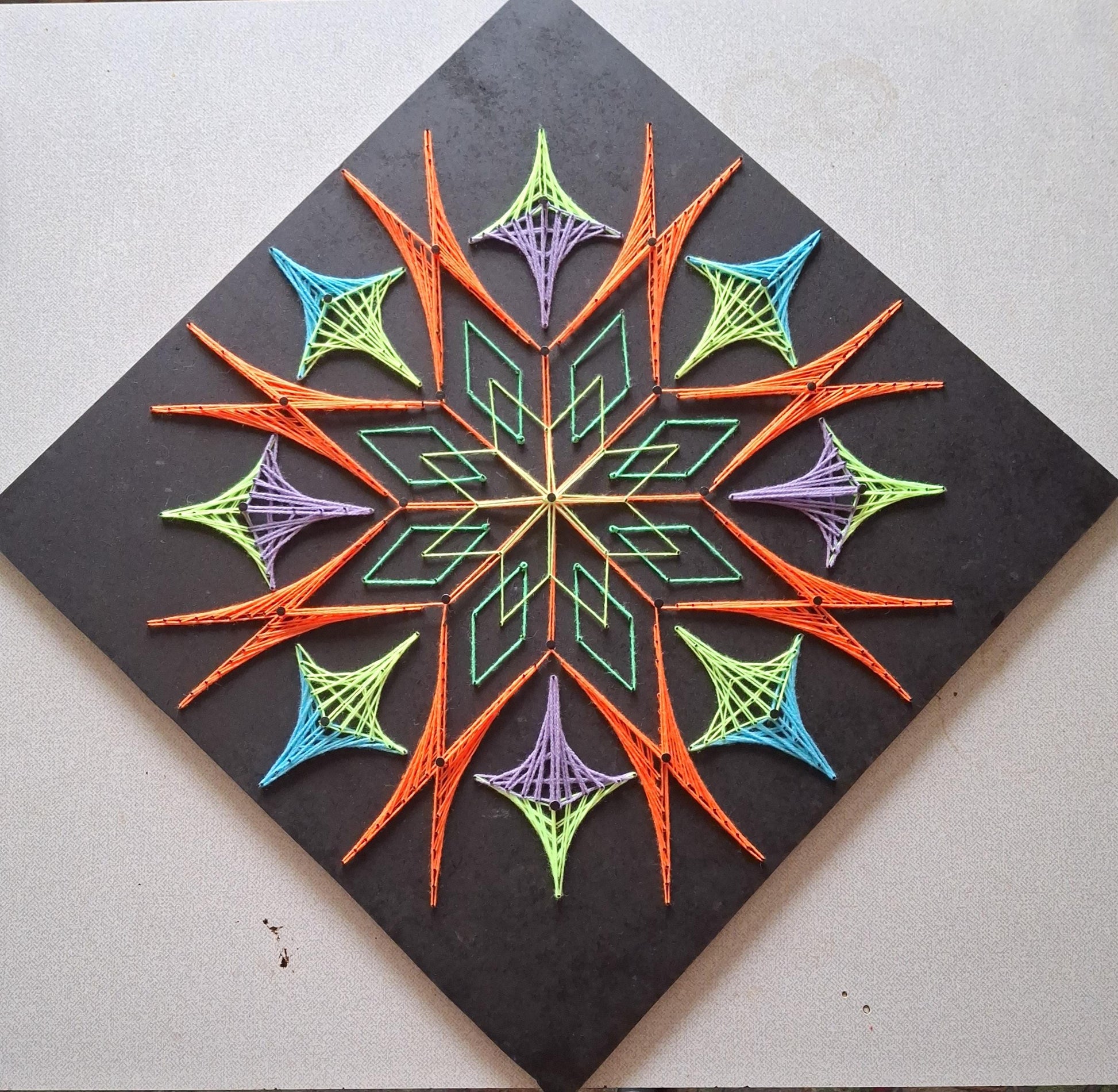 Flame Aster is a handmade string art piece inspired by the natural symmetry of the aster flower.